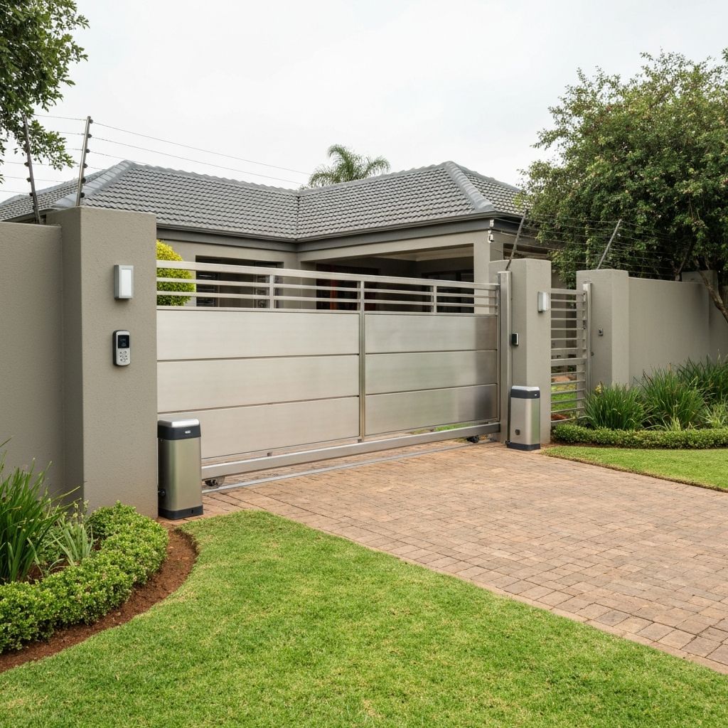 We install premium gate motors from leading manufacturers including CENTURION, ET Systems, and CAME—brands known for reliability and durability. Our automated gate systems include safety features such as photocell beams, anti-crush sensors, obstacle detection, battery backup for load shedding, and multiple control options (remote controls, keypads, smartphone apps, intercom integration). Sliding gates are ideal for limited space and heavy traffic, while swing gates suit traditional aesthetics and smaller openings.